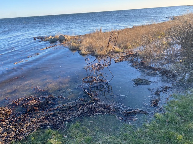PS: En effekt av rörelseenergin är att vinden får havet att stiga. Det beror på att när det blåser från norr eller nordväst pressas vattnet ihop när det passerar genom Kalmarsund. Resultatet ser vi på udden där det såg ut så här i morse: +58 cm.
