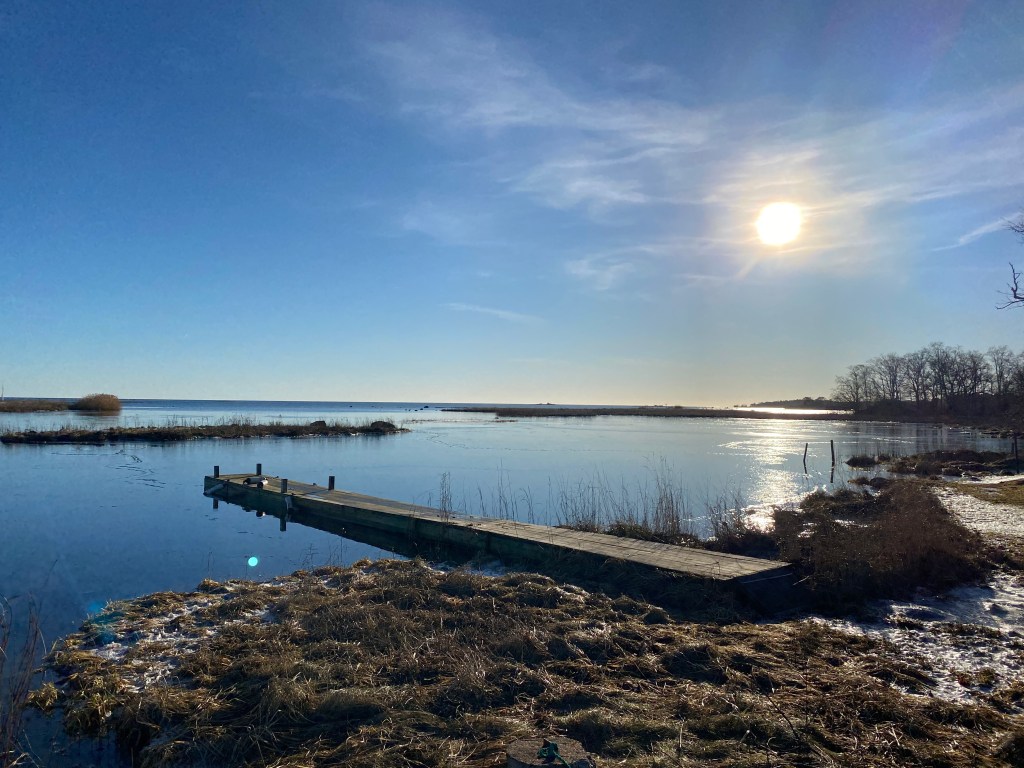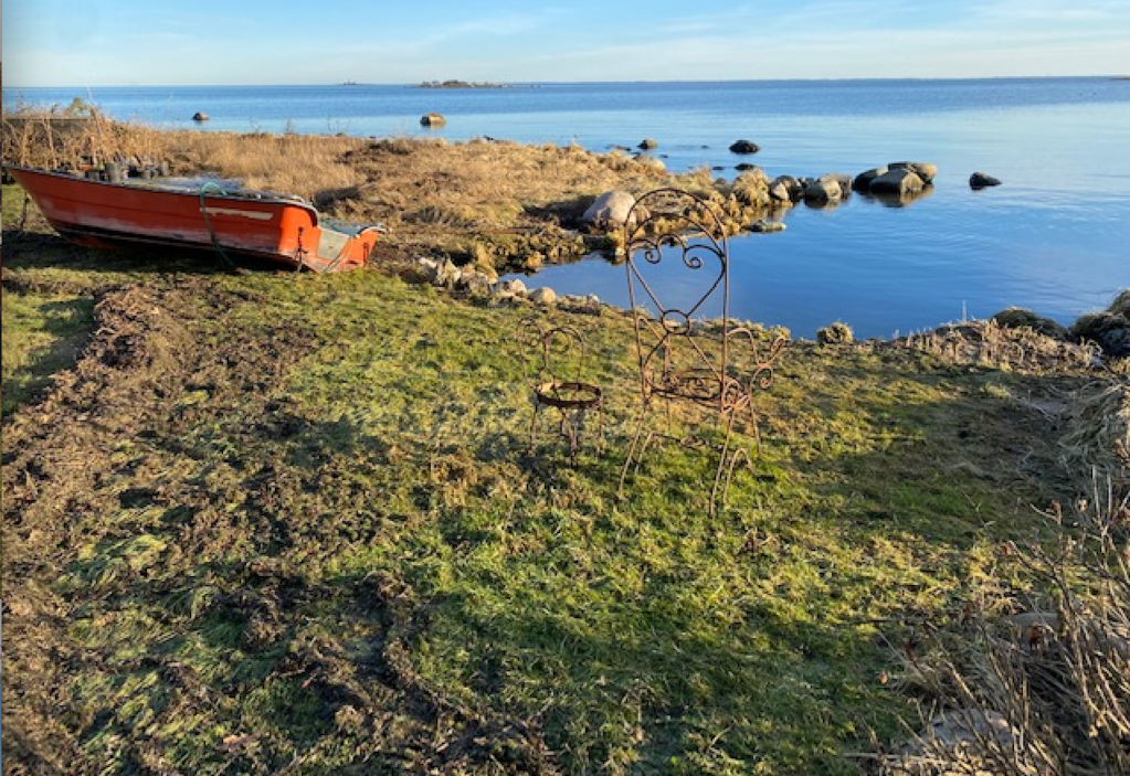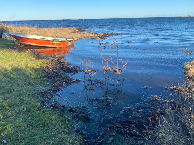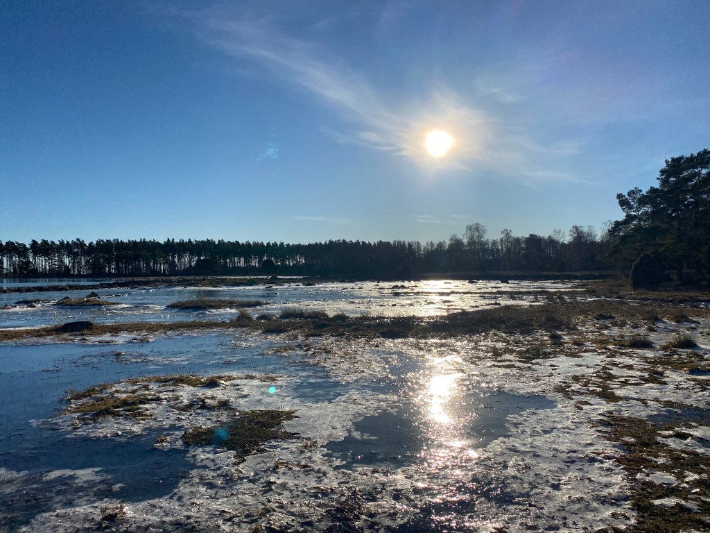 Det var inte den bästa promenadrundan jag valde idag, hela sjöängen mellan oss och Bergkvara var fortfarande översvämmad. Hade höga gummistövlar men det var jäkligt halt så jag fick gå omvägar och vada i vatten. Hade tänkt gå hela vägen till torpet men när han ringde och undrade var jag var och om jag ville bli upphämtad sa jag ja fast jag bara kommit till hamnen i Bergkvara. Var trött!