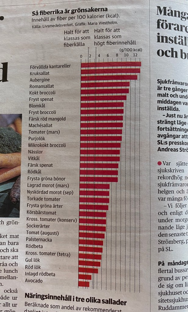 Hon: i dagens DN står det redan på omslaget hur viktigt det är att äta grönsaker och frukt. Ett halvt kilo per dag. Det gör vi INTE!! Jag äter i och för sig en apelsin var morgon, han får en eller två klyftor av den, som inte alltid ens äta upp.