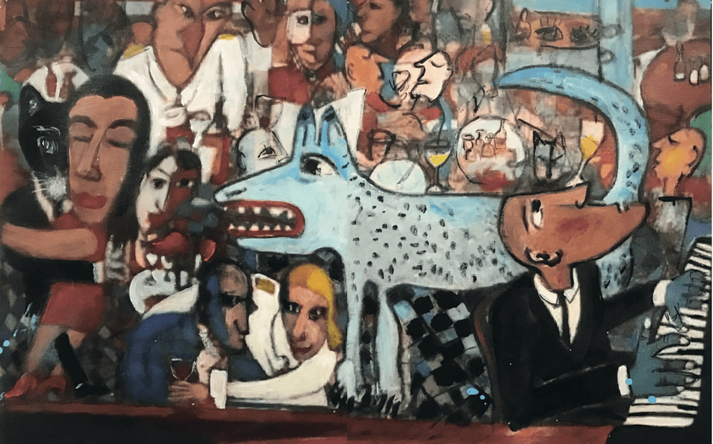 Målningen hängde en gång i tiden på restaurang KB i Stockholm, men köptes av ett ungt ryskt par på bröllopsresa. Jag råkade befinna mig på krogen den kvällen och hämtades in från baren av hovmästaren.