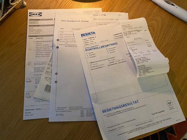 Resten går av bara farten. Besiktningen blir som en bal på slotten, som i en dröm glider jag vidare till Södra Timbre för att köpa virke till bokhyllan i nya ateljén och för att fira ännu en seger åker vi till Ikea för att köpa en dyr bäddsoffa och en ny sängstomme till torpet och nu har vi beseglat dagen med hennes fredagsdrink (Dry Martini) och jag bjuder tillbaka med en gambas ajillo med ett lagom gott vitt vin.
