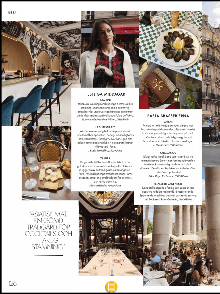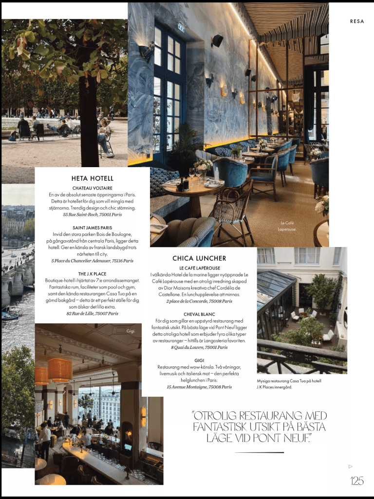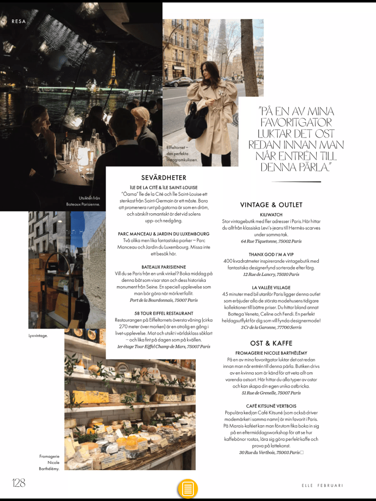 Och så längtar jag ju alltid tillbaka till Paris. Hittade bra tips därifrån i Elle. Delar alla sidor jag sparade :