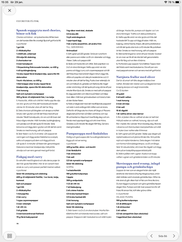 Och så hittade jag ett recept jag tyckte lät gott på fisksoppa. Det snodde han, som ska stå för kvällens middag. Helt okej med mig 🙂