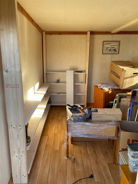 För egen del har jag som sagt börjat boa in mig i Nya ateljén. Som vanligt börjar jag med bokhyllor i Myrdals anda. Detta medan jag lyssnade på P1 Kultur om att Spotifys Daniel Ek snor sig som en mask på en krok inför kritiken från Neil Young och Jude Mitchell om antivaxpropagandan.