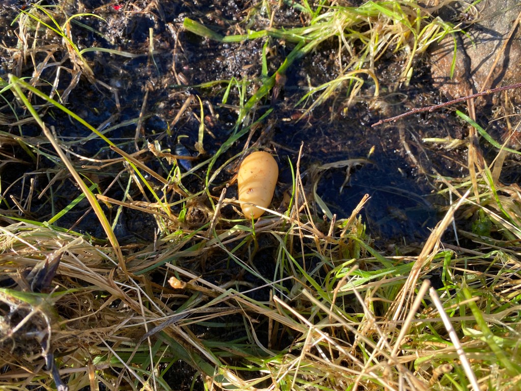 Hans potatisland behöver fyllas på, allt däri tog tydligen havet igår, så dit kör jag tången.