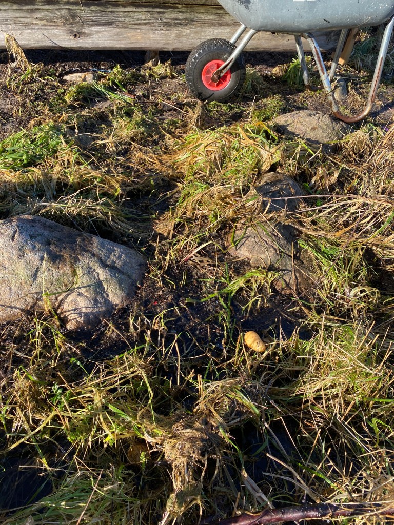 Men nej!!! Nu stiger havet igen och vägen till potatislandet står under vatten. Fast det är i alla fall fint väder…
