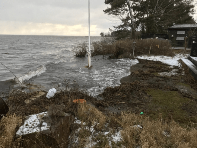 – Rekordet under vår tid på udden nåddes den 4 januari 2017. Enligt SMHI:s mätningar steg havet den gången 105 cm i Kalmar, men enligt mina amatörberäkningar 154 hos oss.