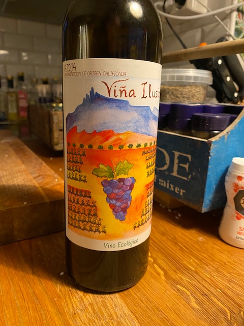 Däremot i glaset: En rioja som heter Prana, vino ecolólogico som servers sval, kanske lite för sval för min kockens smak.