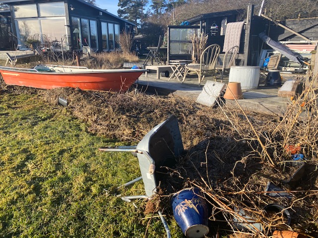 – Fast egentligen hade vi gjort vårt dagsverke, lagret är tömt!!! Nu är allt flyttat till torpet.