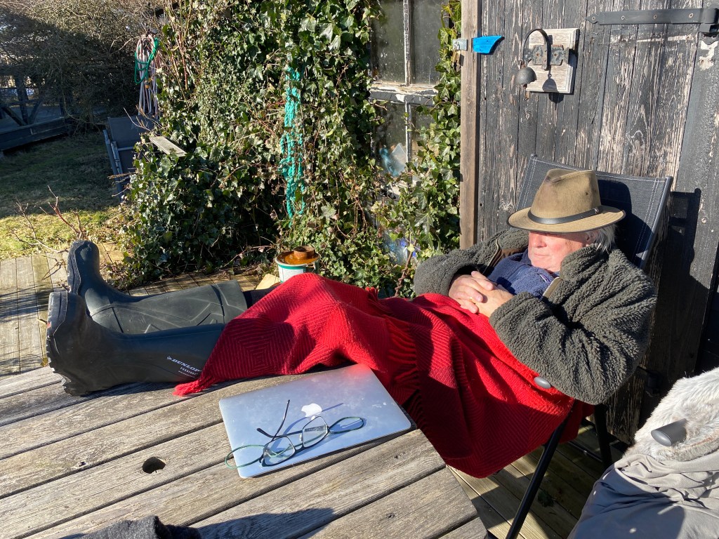 Hon: alltså vad härligt!! Äntligen har solen börjar värma på allvar. Det blåser som fasiken fortfarande, men det är västlig vind så vi har lä på framsidan.