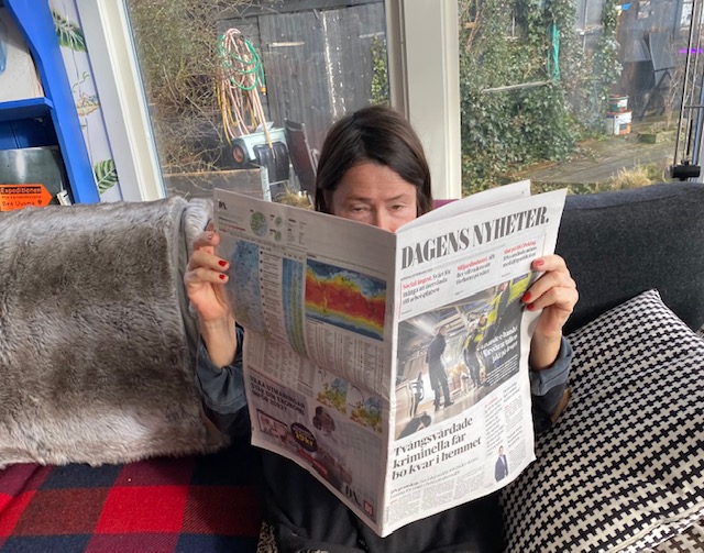 Hon: bilden är fejk, måndagstidningen har ingen börssida, men bekymrad är jag. Rentav deprimerad och känner mig utfattig!!! Men om kriget kommer tar väl ryssen pengarna ändå. Om han inte släpper en atombomb, och då behöver jag dem ju inte ändå… dessutom vaknade jag 4:28 imorse!