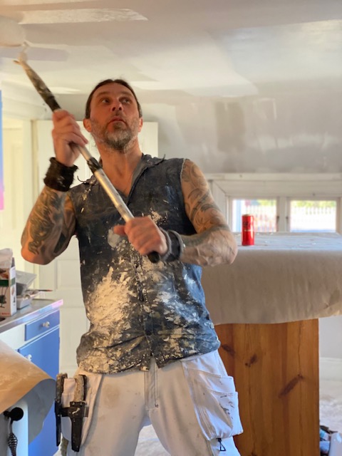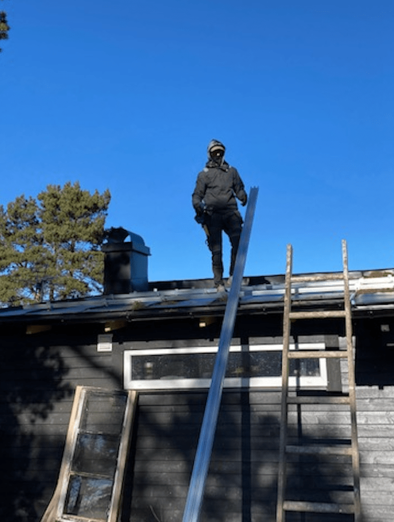 Han: Om arbete ger hälsa, kraft och mod – vilket man hävdade förr i tiden – då är jag vid gott mod. Idag har jag nämligen sett många arbeta. Typ Thomas från Färgklicken som kommit en bra bit på renoveringen av torpet. Och snart skiner solen inte i onödan över udden: