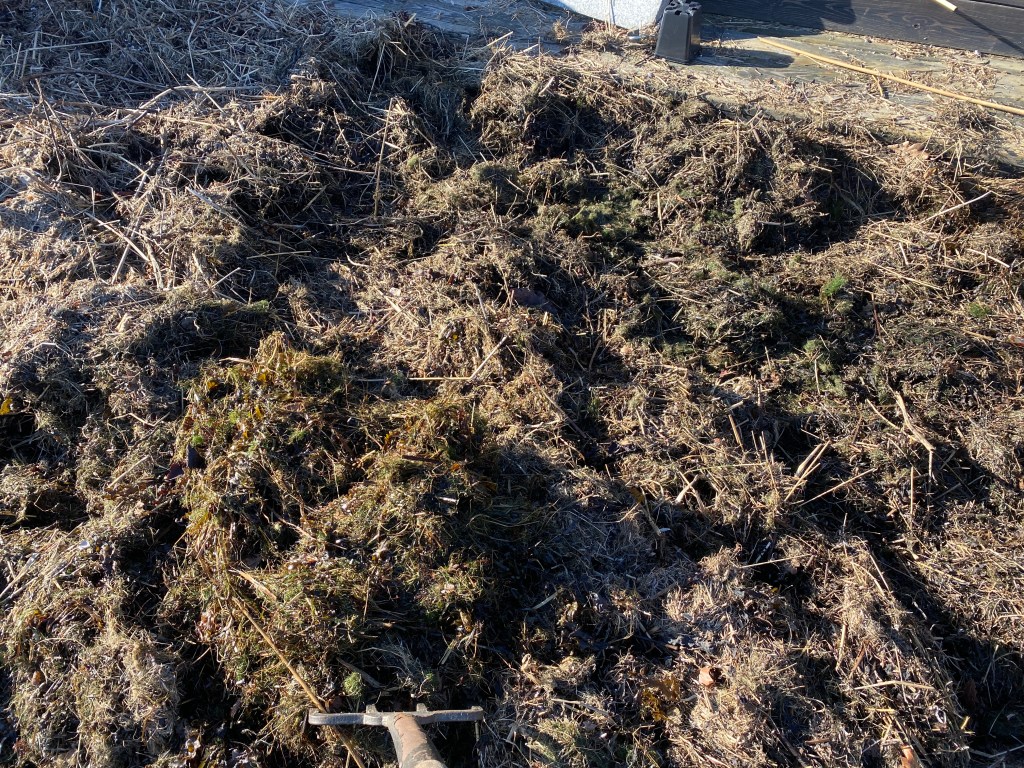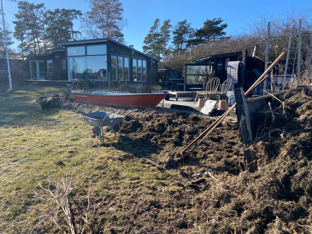 Fast går man bakom huset är det jäkligt kyligt och känns mer som vinter… Tror bara det varit ett par plusgrader som mest idag. Arbetat mig varm. Har ett berg av sjötång att frakta bort…