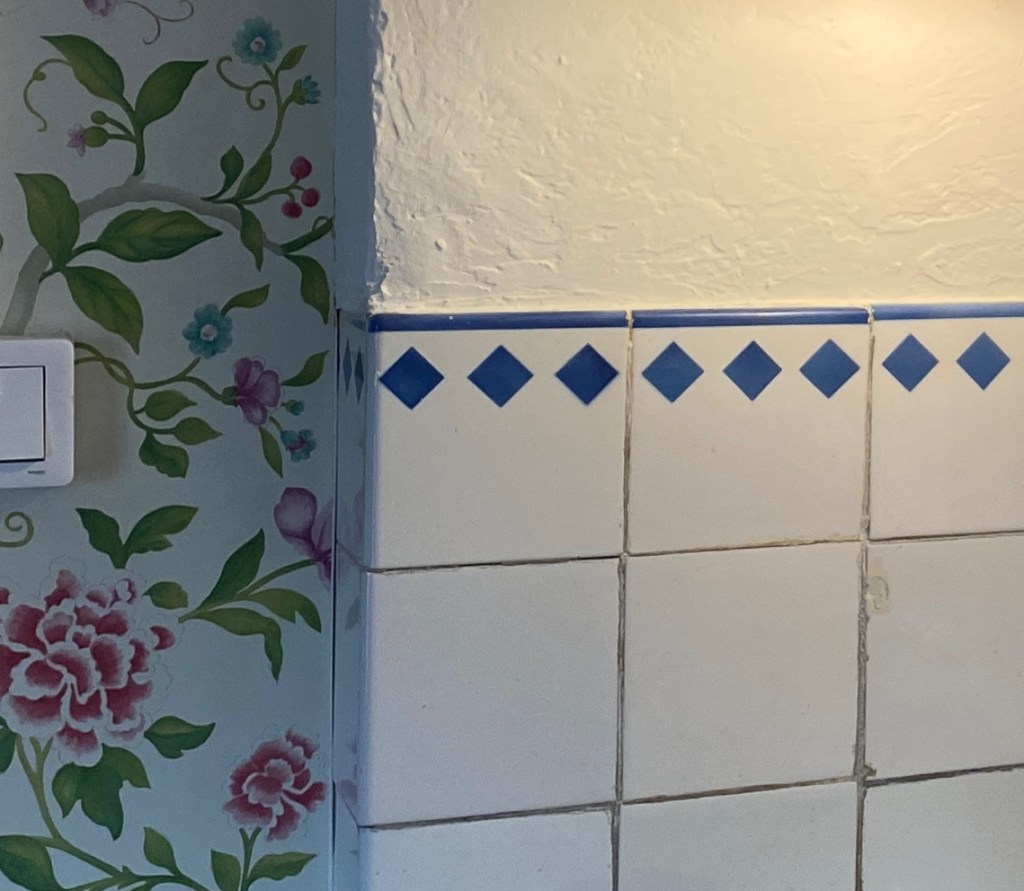 Vita och mönstrade kakelplattor blandade lite sådär snyggt random. Kommer nog passa bra till det gamla kaklet som redan finns, samt till tapeten… hoppas jag!