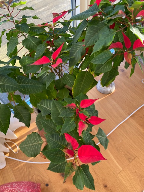 Han:Somliga dagar lägger jag märke till de små sakerna. Till exempel att vår övervintrade julstjärna verkligen tror att det snart är jul.