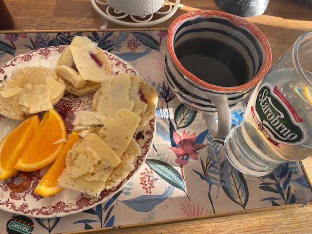 Andra saker känns helt rätt. Noterar till exempel att min yngsta fru plötsligt har blivit min äldsta fru och att vi börjar få ordning på rutinerna: På morgonen cyklar hon och hämtar morgontidningarna. Under tiden gör jag kaffe och tar fram dynorna till solstolarna på sjösidan. Ibland, som idag överraskar hon mig med att göra scones. Även denna trevliga avvikelse mot den trevliga dagliga rutinen har blivit en del av rutinen.