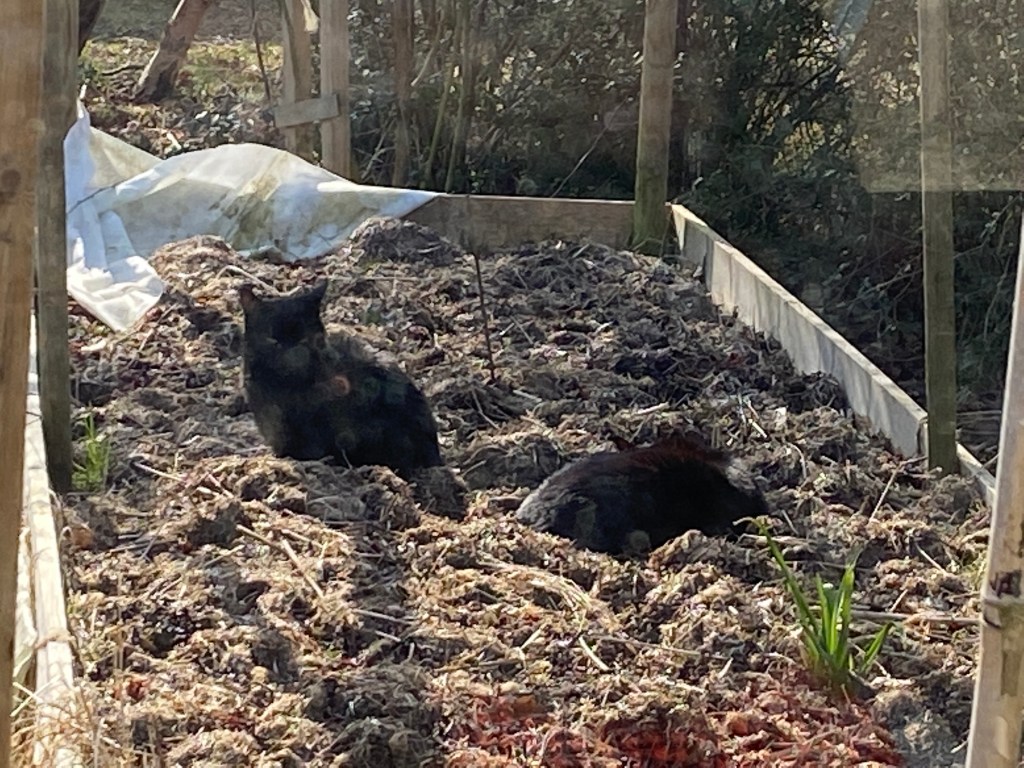 Fast kissarna låg förstås utanför och solade i pallkragarna, så helt ensam är jag ju inte. Och det kan faktiskt vara lite skönt att vara det också emellanåt. Men imorgon har jag nog tröttnat på lugnet och är glad att han kommer tillbaka till udden på kvällen.