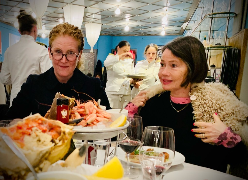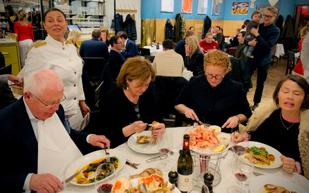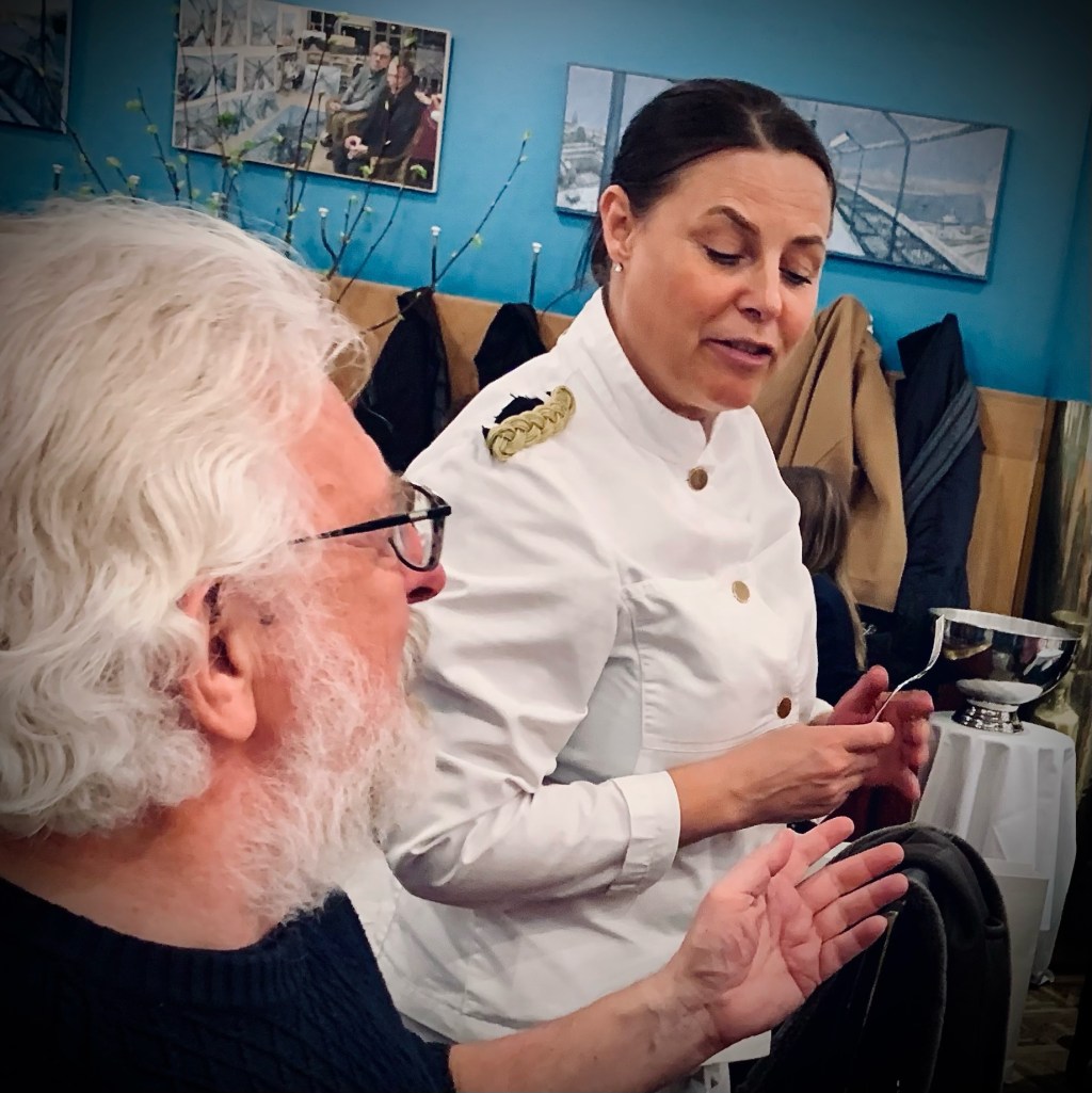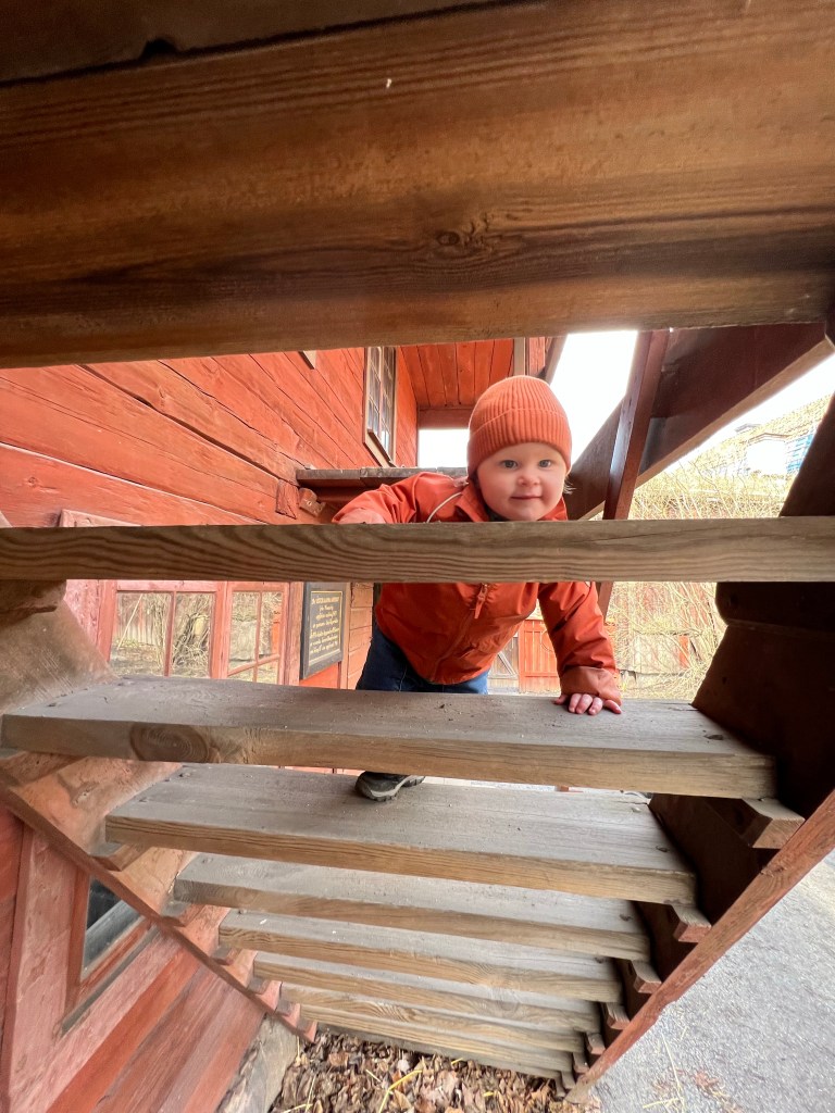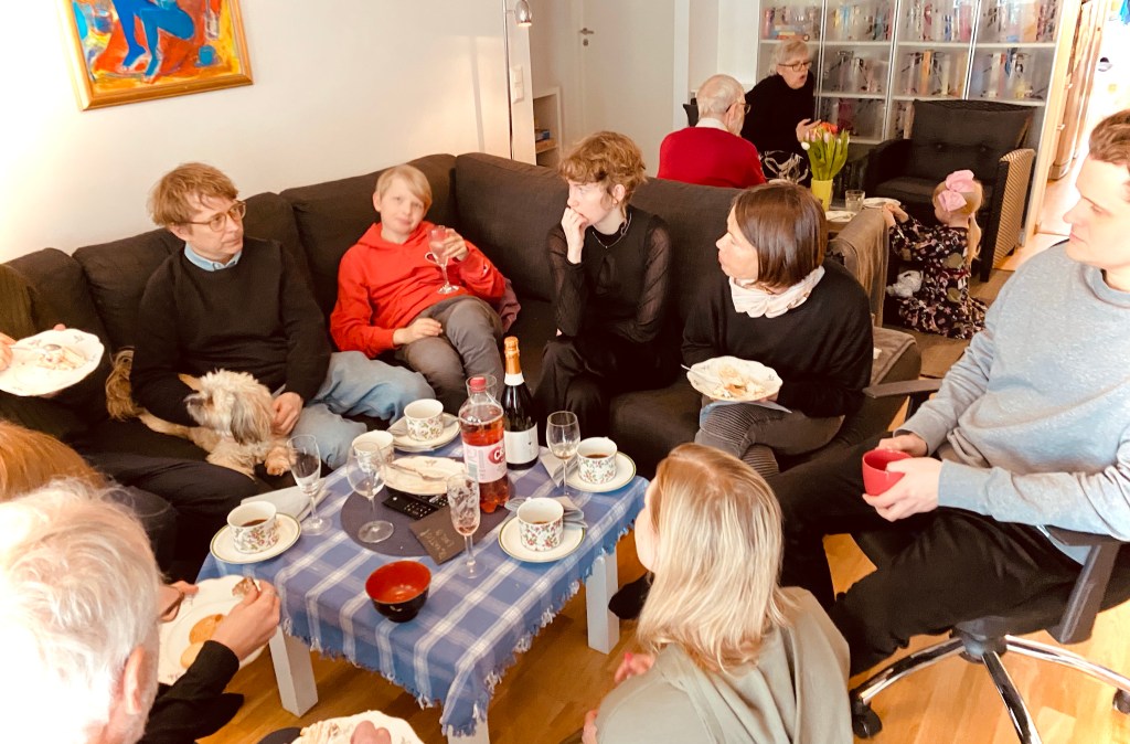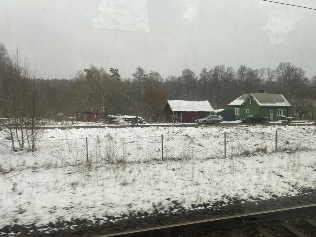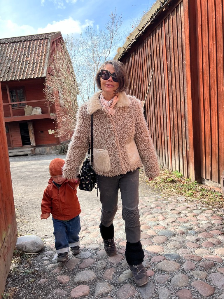 Hon: middagar med kompisar, födelsedagskalas för barnbarn, häng med barnbarn, långpromenad i snöstorm med sovande barnbarn, och så ett sista ryck med dotter och dotterdotter på Skansen. Nu glad, men slutkörd, på tåget mot udden.