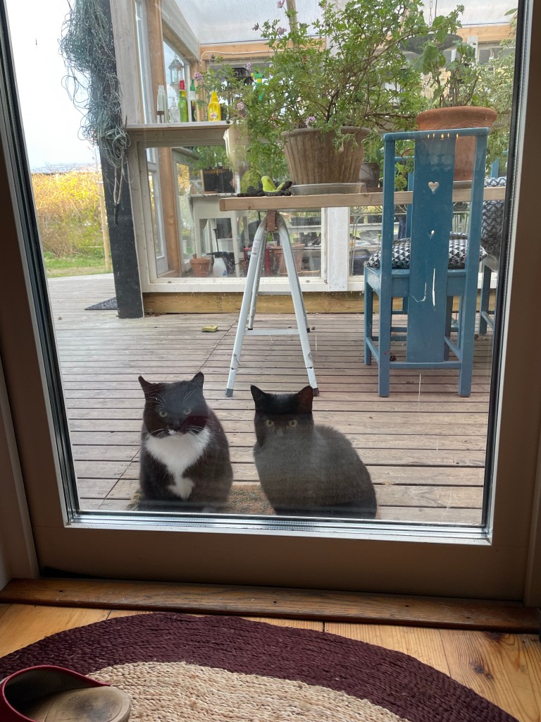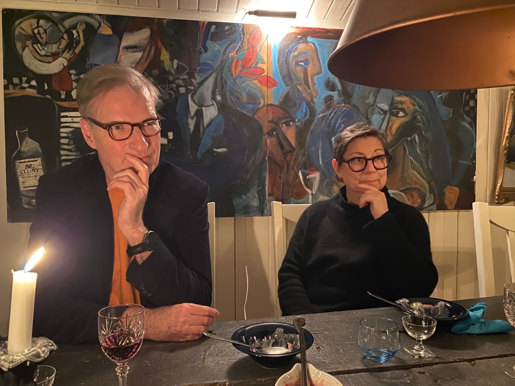Hon: igår fick vi besök av min bästis sen 30 år tillbaka, och hennes man (som också är en bästis, förstås)! De tog in på Chateau Margareta där vi också åt middag eftersom bordet inne i hus 1 är fullt av plantor.