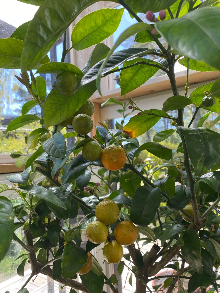 För övrigt doftar det underbart i växthus 2, båda citronträden blommar. Också värt att fira! Och det börjar också synas små små citroner i mitten av blommorna på det stora trädet, så en och annan humla har gjort sitt jobb. Tack!