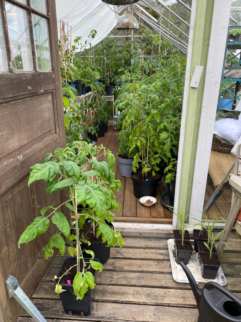 Måste verkligen få ut de flesta av tomaterna nu. Om inte på friland så i stora krukor i lä utomhus. I växthuset ska all chili som fortfarande huserar inomhus bo.