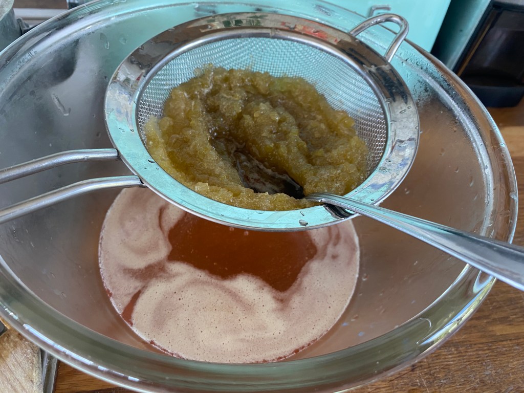 Ja jag sparade förstås rabarbermoset som blev över när jag filtrerat bort sirapen. Det var jättegott.