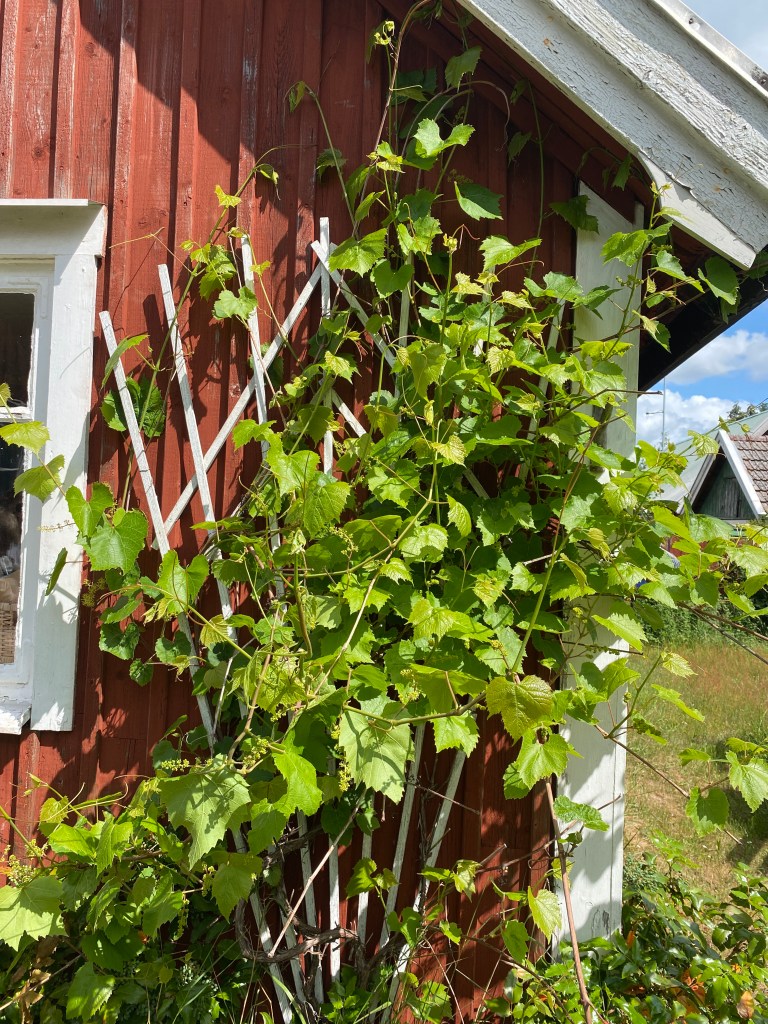 Och där upptäckte jag att vi har vindruvor som växer på gaveln till ladan, hans ateljé alltså.
