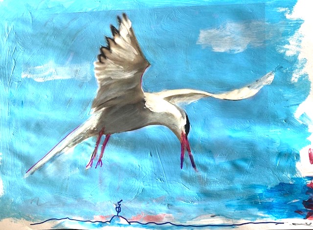 Just nu försöker jag lära mig skillnaden mellan silvertärna och fisktärna som jag skrev om för en tid sedan. Jag jämförde fisktärnan med Lilly My i Mumindalen, vilket jag håller fast vid. Däremot var det nog vid närmare eftertanke en silvertärna som tjatade och som jag tecknade av.