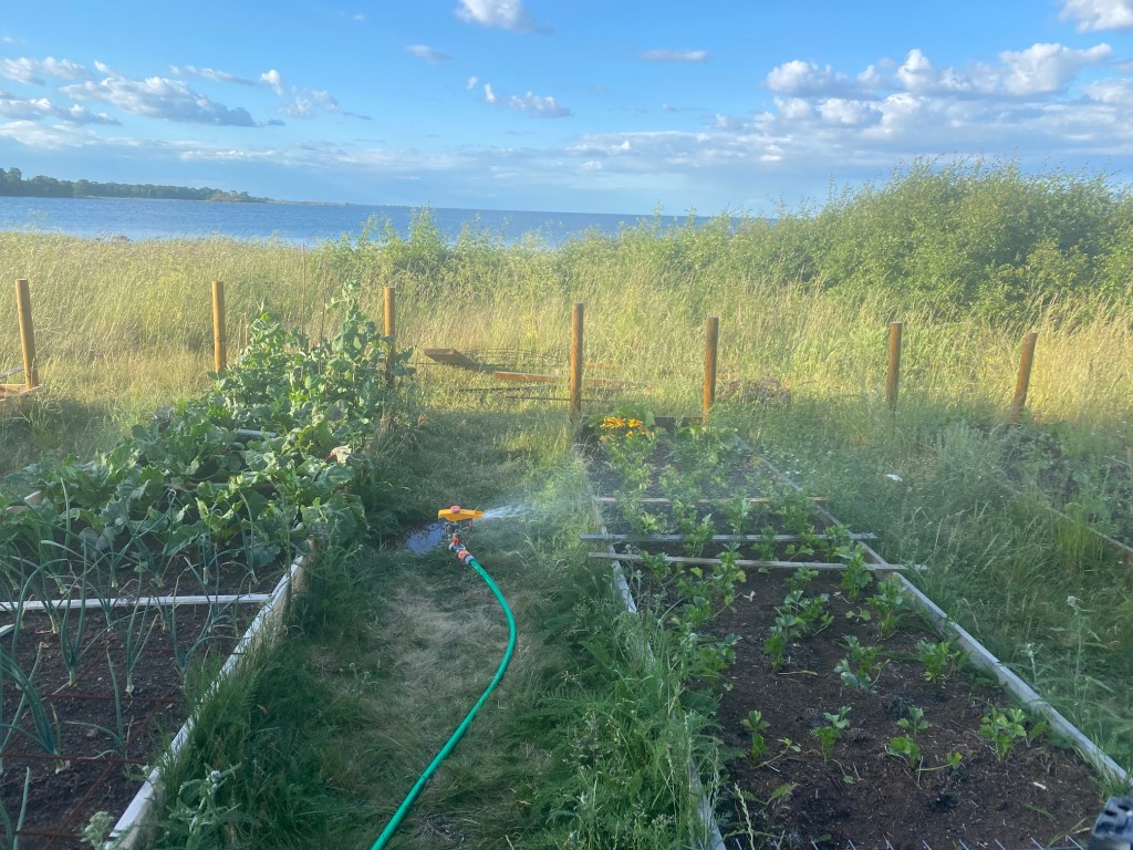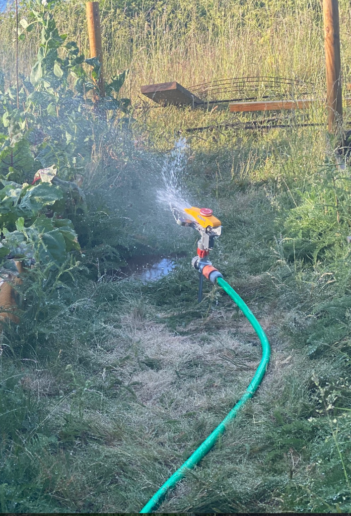 – Idag kunde jag därför köpa en snurrande vattenspridare (209 kr på Lantmännen) som åtminstone förenklar arbetet.