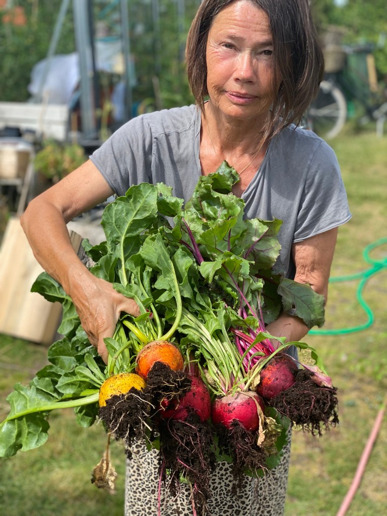 Men det är ju inte så att jag legat däckad, det har jag inte tid med. Det går lite långsammare bara. Och på förmiddagen skördade jag betor, de är såååå stora. Hoppas de är goda också! Ändå…