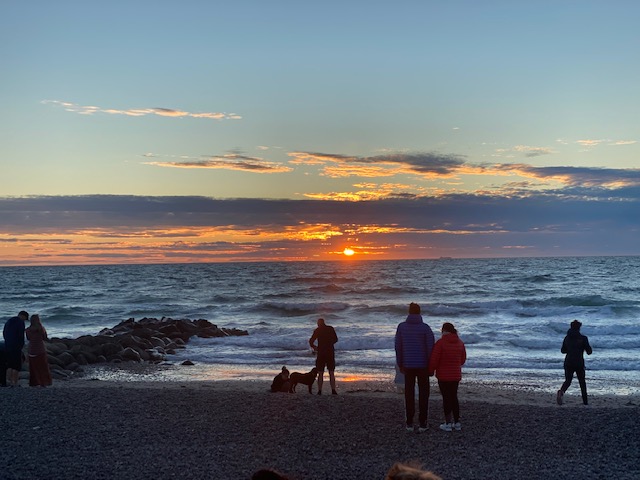Och sedan gjorde vi som alla andra badgäster, vi samlade utanför Solnedgångskiosken och såg solen gå ner.