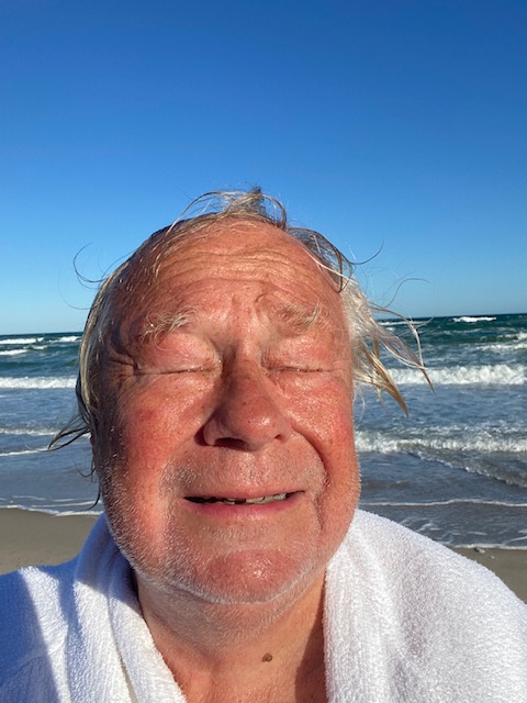 Han: Det var ett tag sen. Det beror på natt vi haft semester från semestern och lämnat udden för en annan udde – Grenen i Skagen. Underbart, förstås. På hennes bucket list stod att bada i ett riktigt hav. Det fick hon, vilket betyder att även husse tidigt en morgon gick mot sitt mandomsprov.