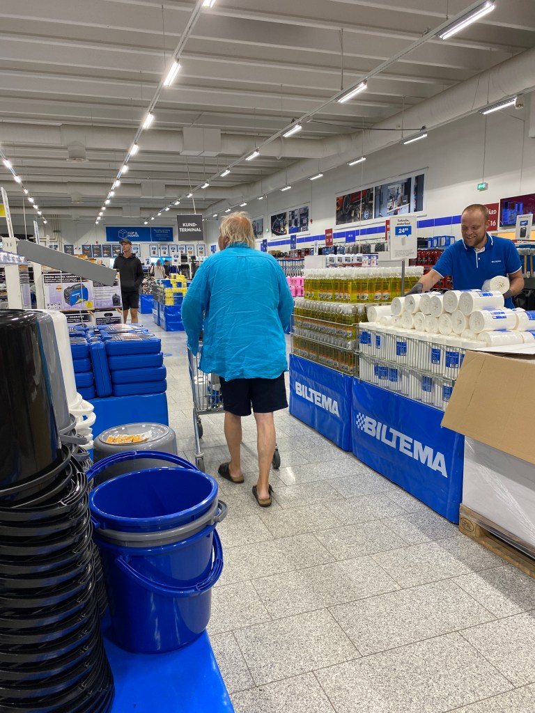 Biltema passerar man på vägen hem från Ronneby, ligger precis utanför Karlskrona, och det åker man ju inte bara förbi. Där inhandlades diverse saker, bland annat två solstolar till torpet som var det vi egentligen skulle ha… bara! Såpbubblor, diskställ, bevattningsslangar, sekatörer, blockljus, cyklop mm mm slank också med.