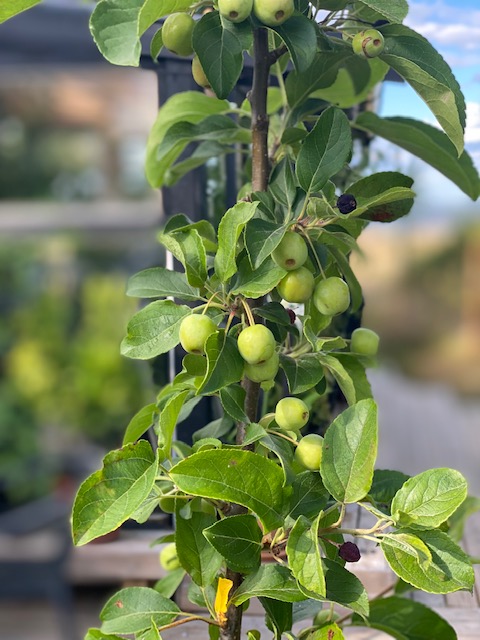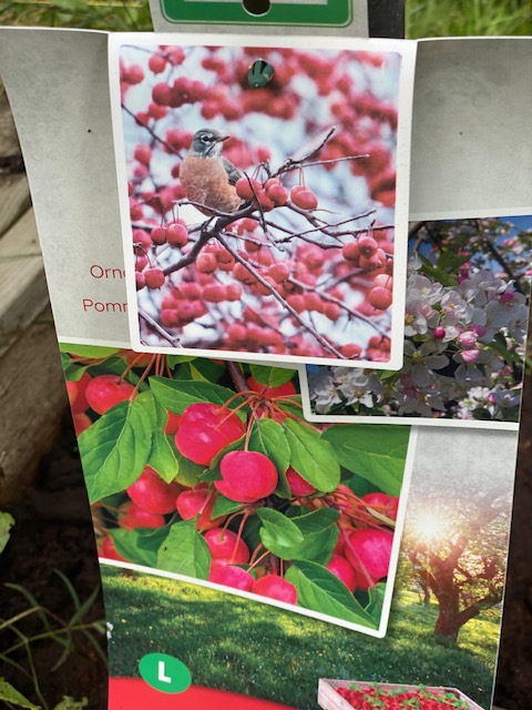 Alltså åkte vi till på Blekingeplantan och köpte en prydnadsapel (Malus Red Sentinel) för 650 kronor. Ett litet välväxt träd med rundad krona (men vårt är långt som en stör och kronan spretar rakt upp).