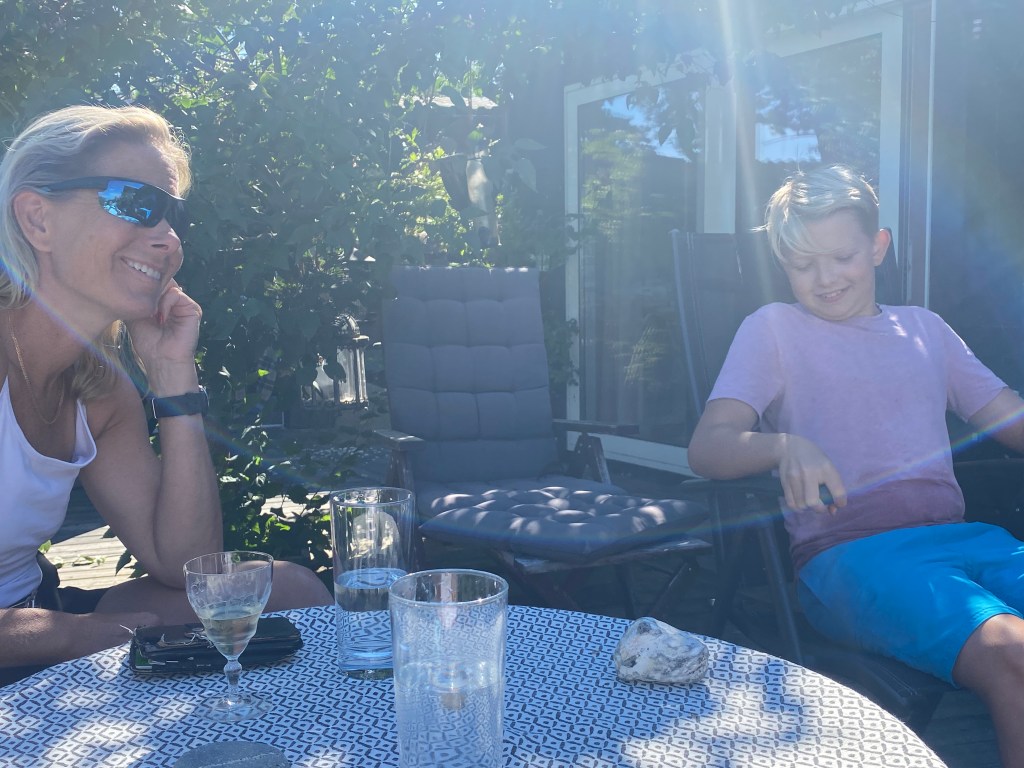 Och så tog vi en avskedsdrink med barnfamiljen som huserat i torpet senaste veckan. I morgon bitti åker de mot Stockholm igen. Men vi ses snart igen i Palma då ett av våra andra barn gifter sig. Mer om det den 12 augusti!