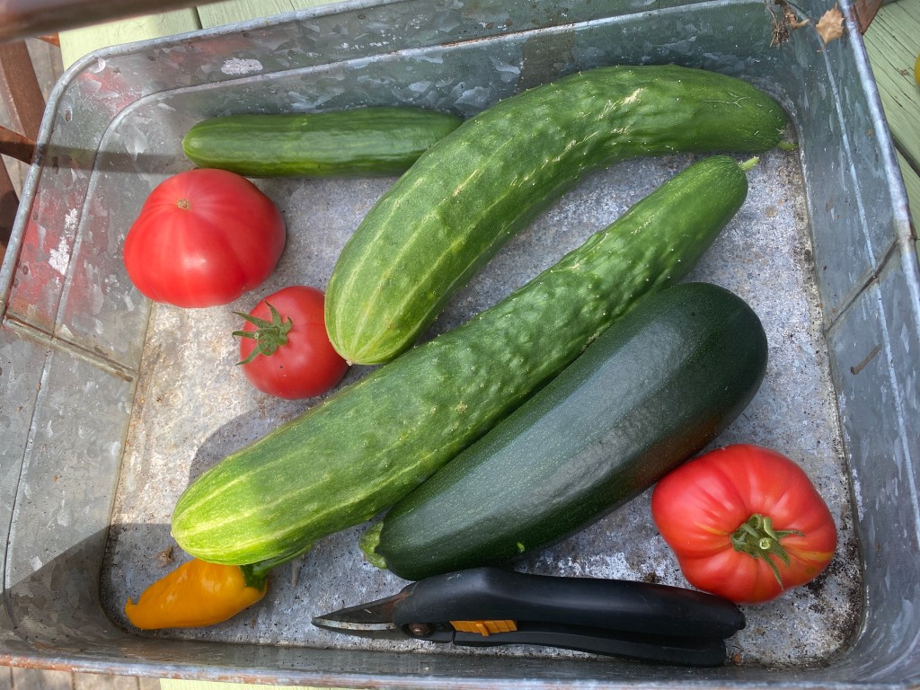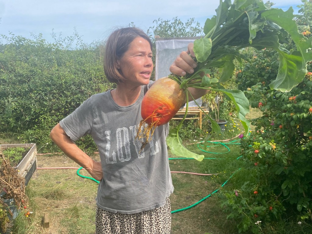 Men före dess är det massor att göra. Både i trädgården och i hus 1 och i hus 2. Tvätta, städa, bädda om och skörda. Så mer än så här hinner jag inte idag. Full fart!!!