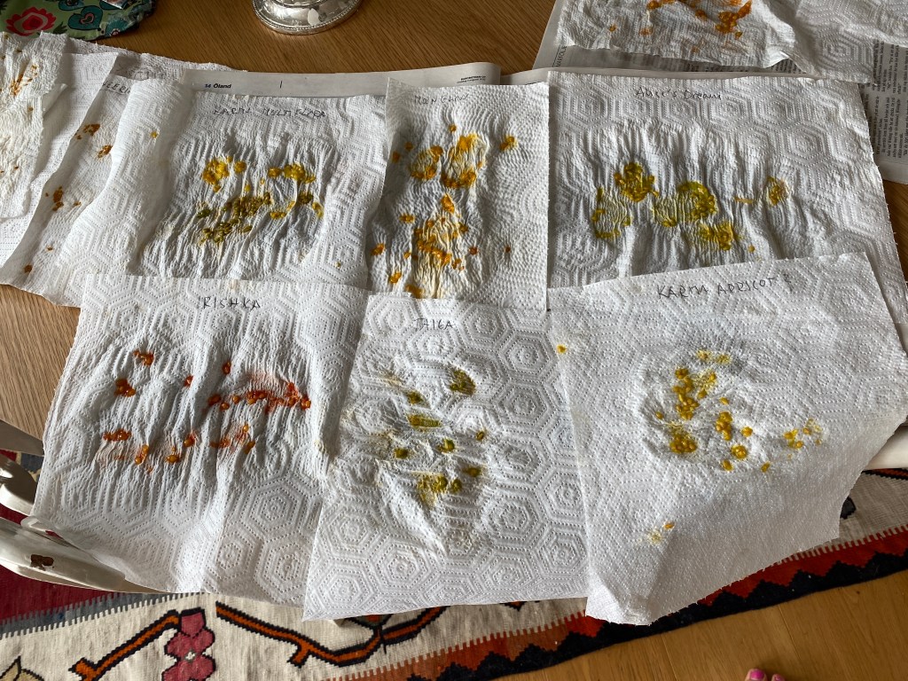 Förutom avbrottet med sjötångsrensning så samlar jag in fröer från de av årets tomater jag gillar (från de som är tillräckligt mogna vill säga…) och vill ha även nästa år. Resterna kokar jag bolognese på. Var nog många gula och orangebruna sorter ser det ut som: