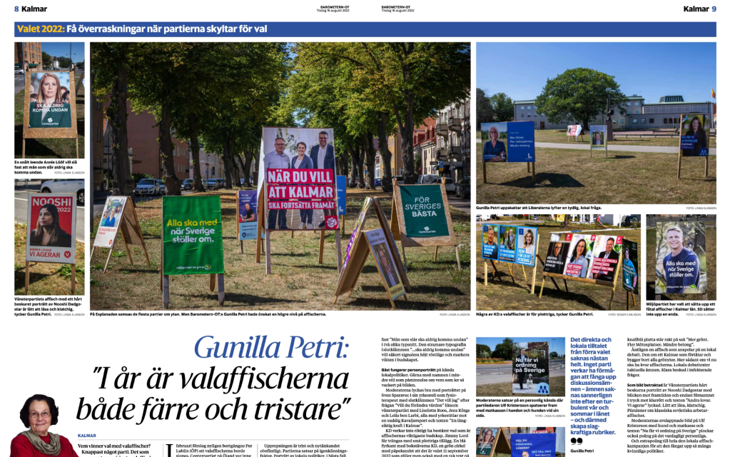 Så är det med budskapen på valaffischerna: ”För Sveriges bästa”, ”Alla ska med när Sverige ställer om”, ”När du vill att Kalmar ska fortsätta framåt”.