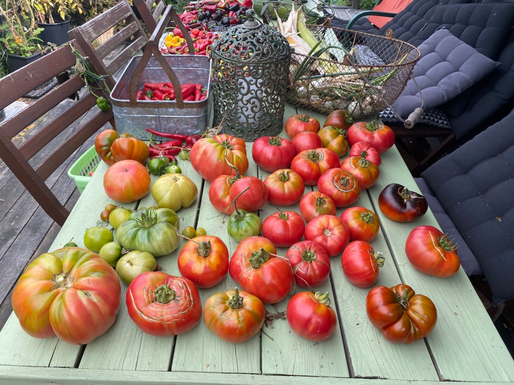 Fram för mer rött och närodlat! Här fortsätter skördandet och ketchupkokning.