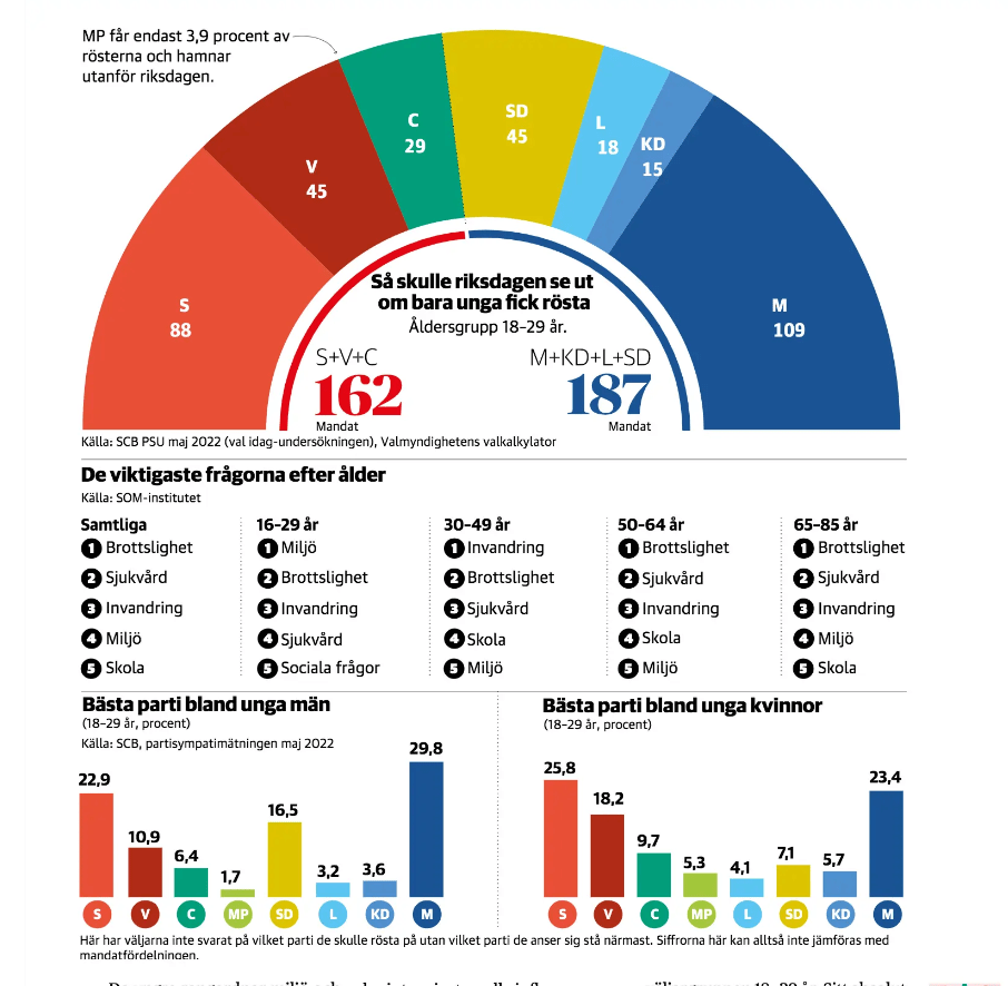 Skulle de unga (18-29 år) få bestämma skulle MP åka ut ur riksdagen och Ulf Kristersson (M) bli statsminister.