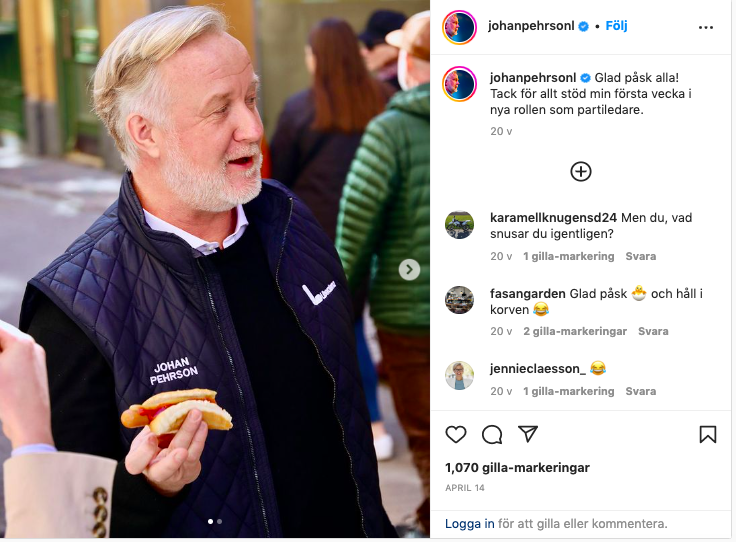 Kanske tycker jag trots allt mest synd om korven som blivit ett slagträ i denna märkliga valrörelse. Busch var ju inte först med att dra korvkortet. Liberalernas Johan Pehrson la tidigt beslag på varmkorven – på hans Instagramkonto räknar jag till till minst tolv (12) korvrelaterade bilder.
