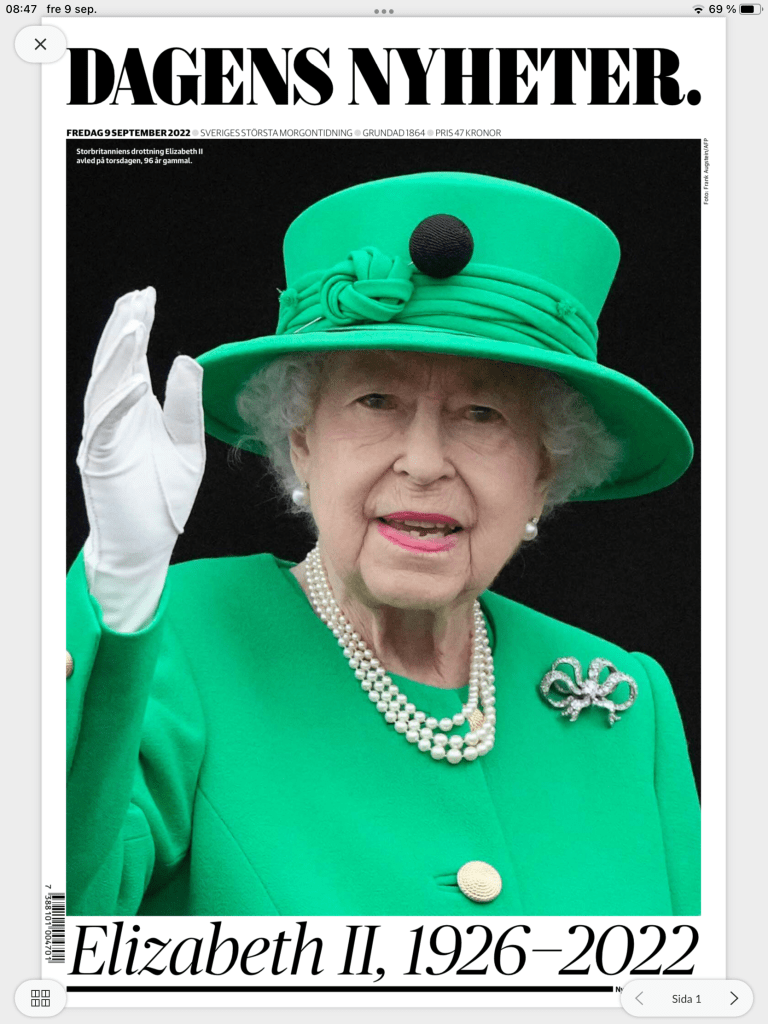 Hon: väldigt konstig känsla att Drottning Elisabeth är död, känns overkligt. Vad händer nu…?