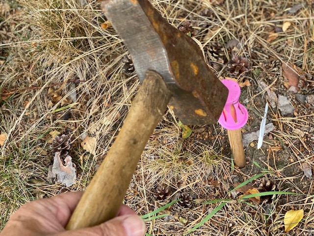Veckans insats: kartor, 263 tomtpinnar och 9 800 steg. Så långt gick fyra gubbar i solen. Detta för att fastställa framtida tomtgränser i vår stugförening.