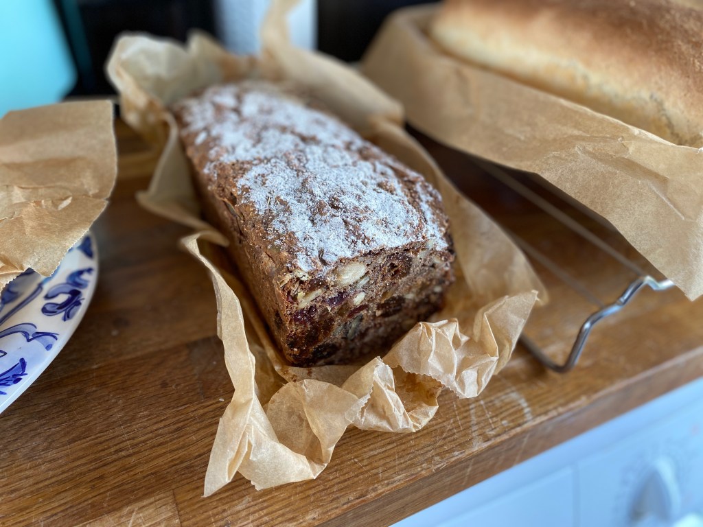 Det mörka frukt- och nötbrödet som jag också bakat är på bakpulver. Det tycker han också är jättegott. Men efter helgen blir det allt surdegsbröd igen 😉