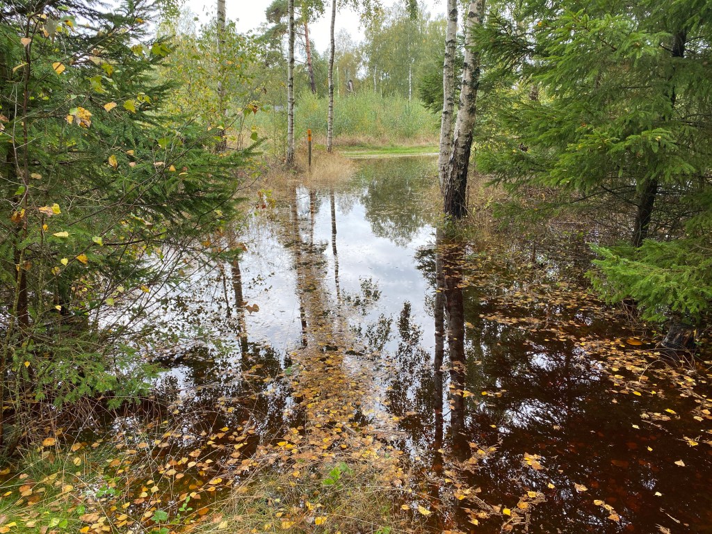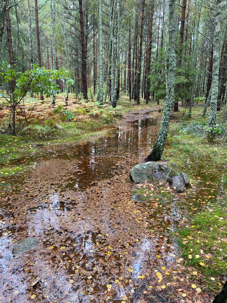 Hon: och det var lika illa i skogen, det har jag inte varit med om förut. Tur jag tog mina knähöga stövlar. Kunde ändå inte följa stigen utan fick ta avstickare in i skogen. Men det var det värt, så skönt efter typ två dagar utan frisk luft!!!