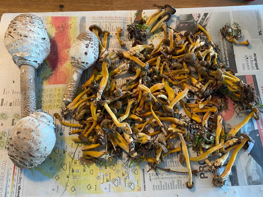 För att få lite ”köttkänsla” i pastasåsen var det bara ut och leta svamp. Hade tur och hittade tre superfina små Stolt fjällskivling. Trattisarna, de som går att hitta, är helt uttorkade och pyttesmå. Lika bra att plocka dem innan de helt skrumpnat.