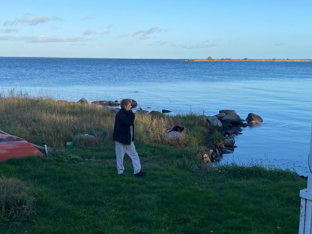 Han: Mycket händer i världen (Ukraina) och börsen gick på plus, men mycket lite har hänt på udden. Så jag nöjer mig med att publicera en bildserie på sonen och katterna: