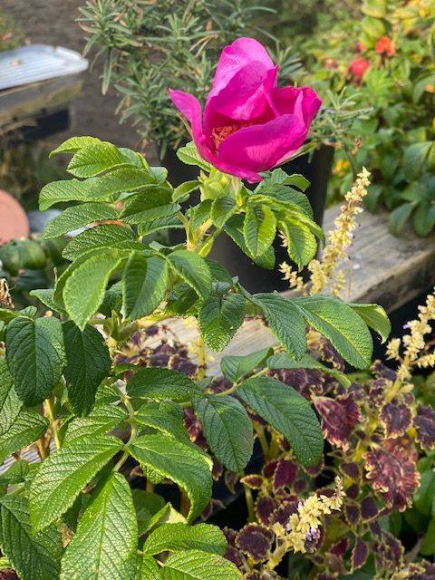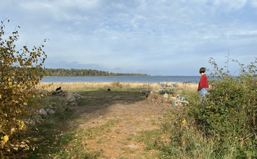 – Och bäst av allt: På udden kan vi fortfarande njuta av att rosorna fortfarande blommor och att höstsolen skiner på katter och matten i Margaretas röda kofta.