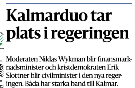 Här i Småland gick det bättre, rena lottovinsten. ”Två ministrar med rötter i Kalmar och ett kommunalråd från Växjö. Det var utdelningen, sett med mer lokalpolitiska glasögon”, skriver Barometerns Birgitta Hultman glatt om än lite generad över dagens ”lokalpatriotiska kråkvinkel”.