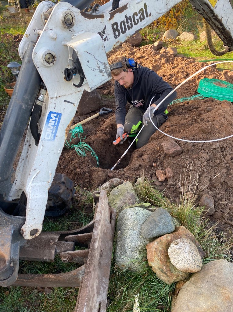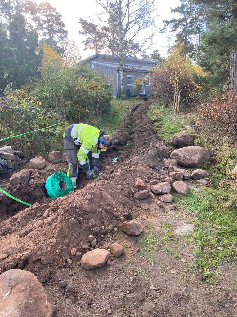 Vad jag ville berätta är att idag har ägnat hela dan åt att titta på när grabbarna gräver ner de sista hundra metrarna med fiber till oss på udden.